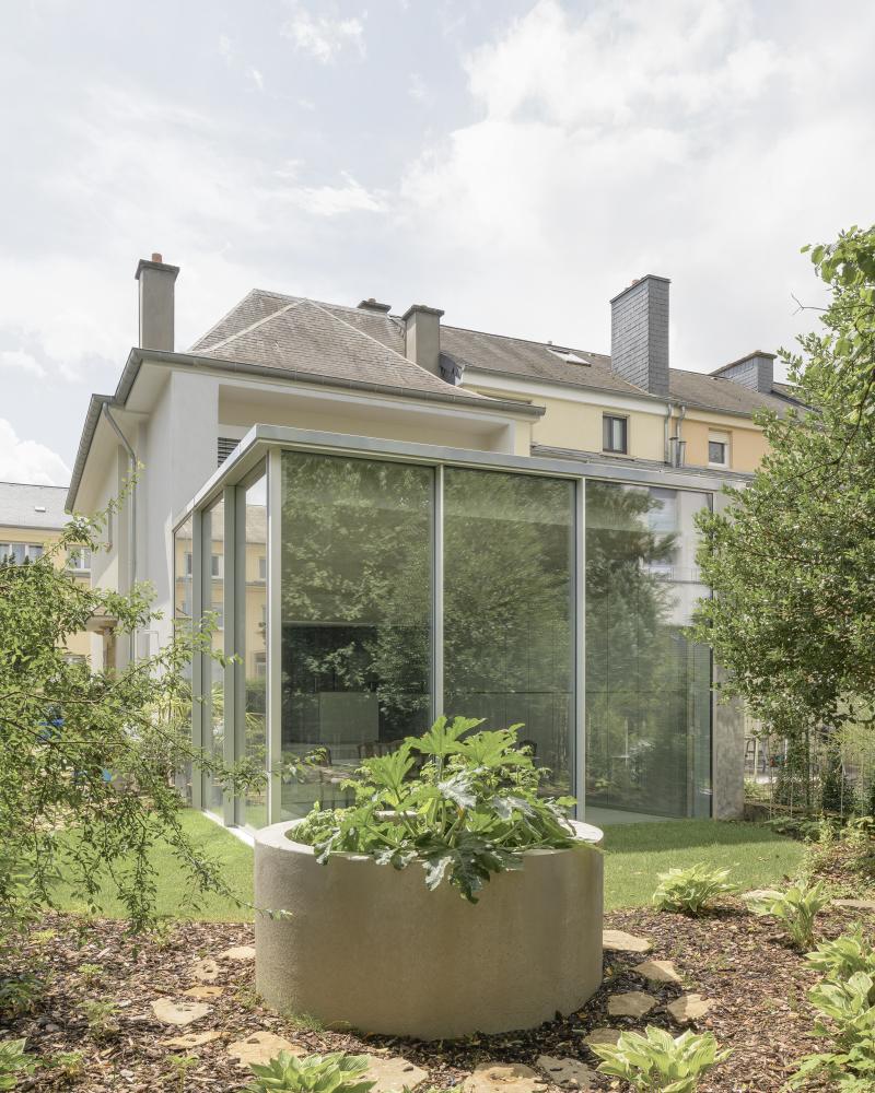 On a quiet street in Luxembourg City, a corner house from 1957, once converted into a children’s day care centre, stood fragmented and stripped of its domestic soul. The rooms were carved up by heavy fire doors, the garden sealed under concrete and rubber safety tiles. In the name of regulation, the post-war home had been sterilised into a place of institutional “care”, its everyday intimacy erased.